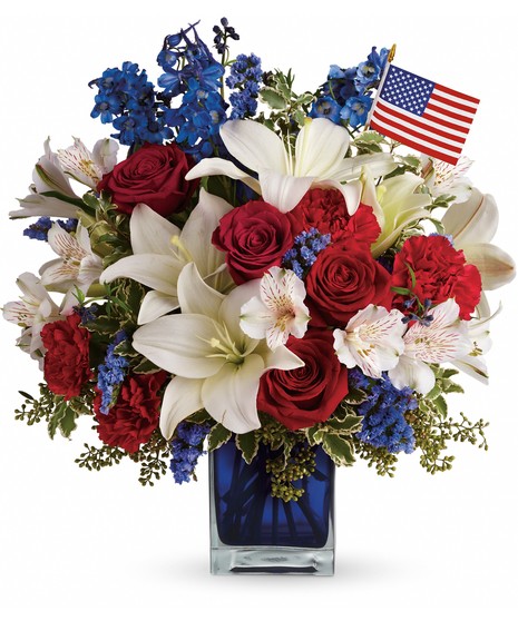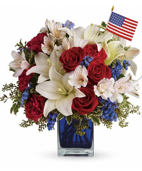 Red, white and blue is the theme and patriotism is the sentiment. Send this to your favorite veteran.