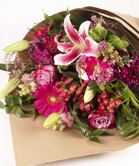 This gorgeous hand-tied bouquet is sure give anyone a "Happily Ever After". This bouquet is wrapped in a water pack and brown paper for a nice presentation with out a vase.