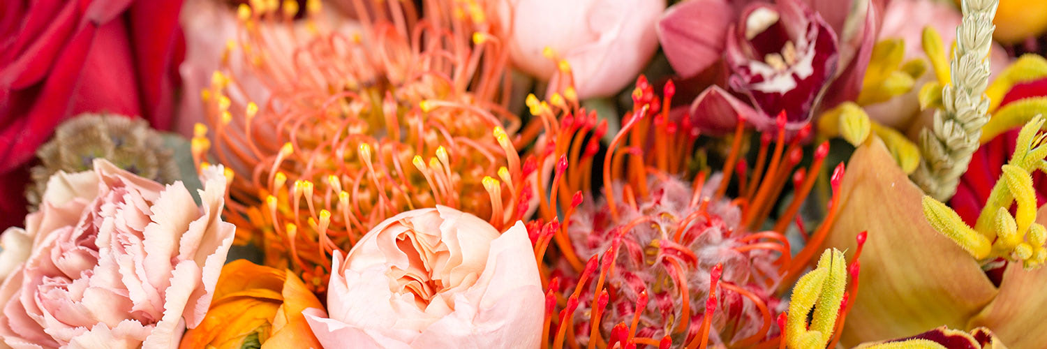 Shop gorgeous flower arrangements featuring Proteas with Vogts Flowers. The Protea's distinct shape adds an exotic touch to wedding bouquets and floral arrangements. As a cut flower, Proteas have an exceptionally long vase life and are absolutely striking when grouped with other varieties. A floral arrangement with Protea flowers makes a wonderfully unique and glorious gift for any occasion.